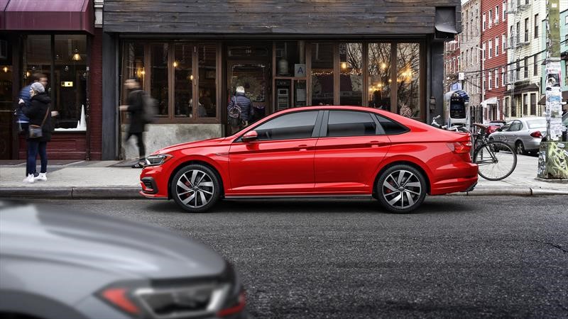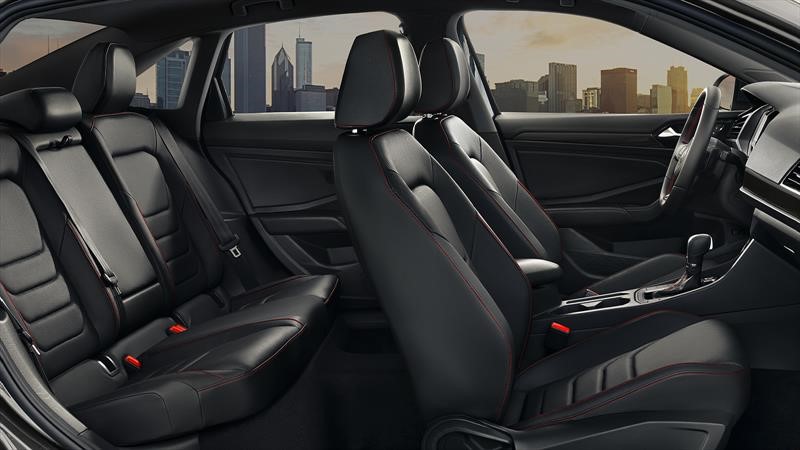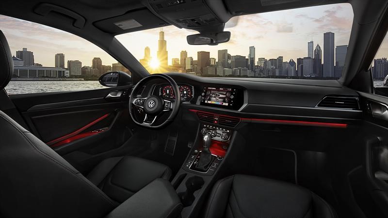 En su interior, se mantiene el diseño del Jetta convencional, pero incluyendo algunos acentos en rojo, butacas deportivas, tapicería de cuero y el clúster digital Active Info Display de 10,25”, aparte del sistema multimedia de 8", climatizador dual y los chiches que corresponden a un auto de esta categoría. Si destaca, el sistema de audio firmado por Beats con subwoofer.