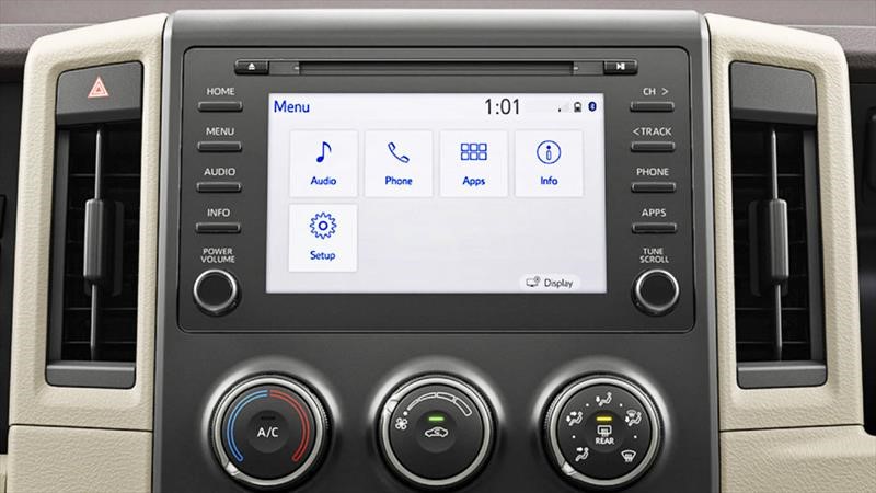 Las versiones de carga incluyen tres asientos delanteros, y en equipamiento suman vidrios eléctricos, aire acondicionado, volante multifunción y audio con bluetooth, entre lo principal. El minibús, en tanto, suma un sistema de audio con pantalla táctil y conectividad a Apple CarPlay y Android Auto, cámara de retroceso, climatizador con mandos independientes para las filas posteriores, respaldos reclinables, y dos puertos de carga USB en cada fila de asientos.