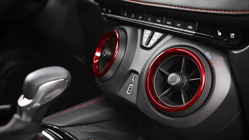 Ah y no queremos olvidarnos de lo más importante, la consola prácticamente parece sacada del Camaro, incluyendo los comandos del climatizador integrados en los aireadores inferiores.