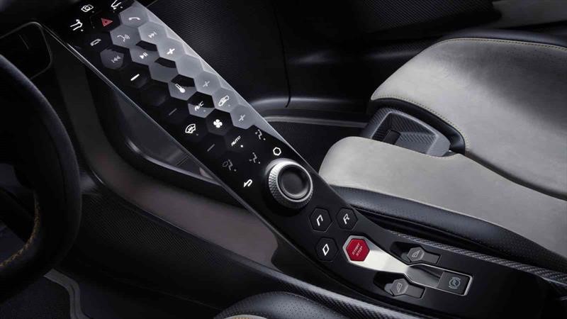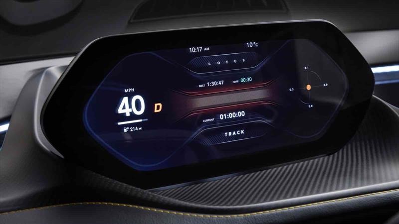 Adentro, el Lotus Evija es tan revolucionario como en el exterior, pero igual de pulcro. Inspirada en la ingeniería de los autos de carrera, la característica dominante de la cabina es el tablero de instrumentos de "ala flotante" que puede verse desde el exterior a través del parabrisas. Por su parte, el acceso a la cabina es a través de las dos puertas sin manijas para preservar el diseño y aerodinámica de la carrocería, como también lo hacen los retrovisores exteriores que operan con cámaras y se pliegan dentro de la carrocería.