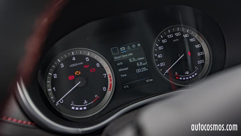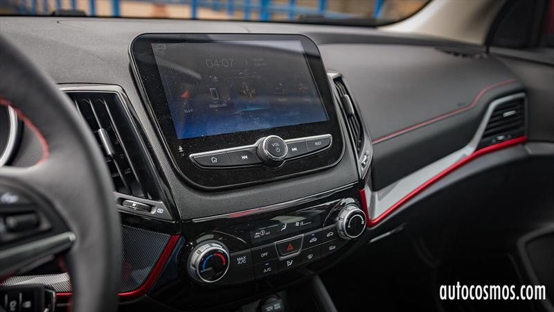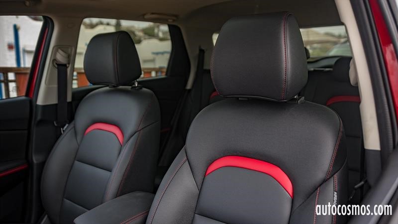 Puertas adentro se nota una mejora muy importante en términos de materialidad y calidad percibida. Nuestra unidad de pruebas incorporaba un tapiz de cuero sintético bicolor con las costuras rojas a la vista, que se replican en el tablero y en las puertas.