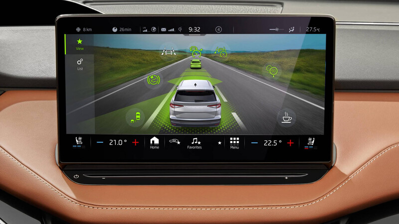 El modelo checo disfruta de una carga rápida de hasta 125 kW. De este modo, la batería de 82 kWh (la de mayor capacidad), puede estar lista al 80% en tan solo 38 minutos. En un wallbox de 11 kW, el proceso oscila entre las seis y las ocho horas.