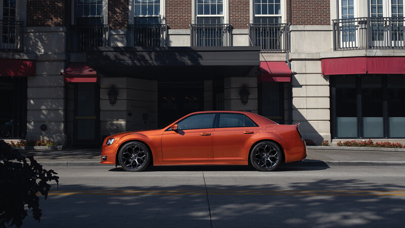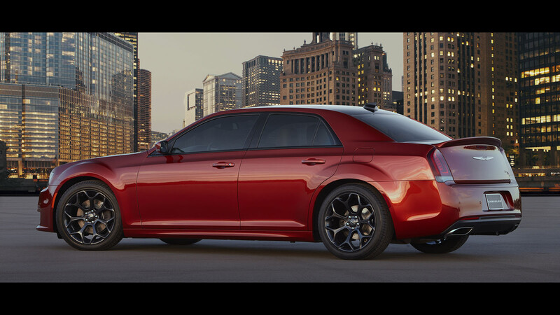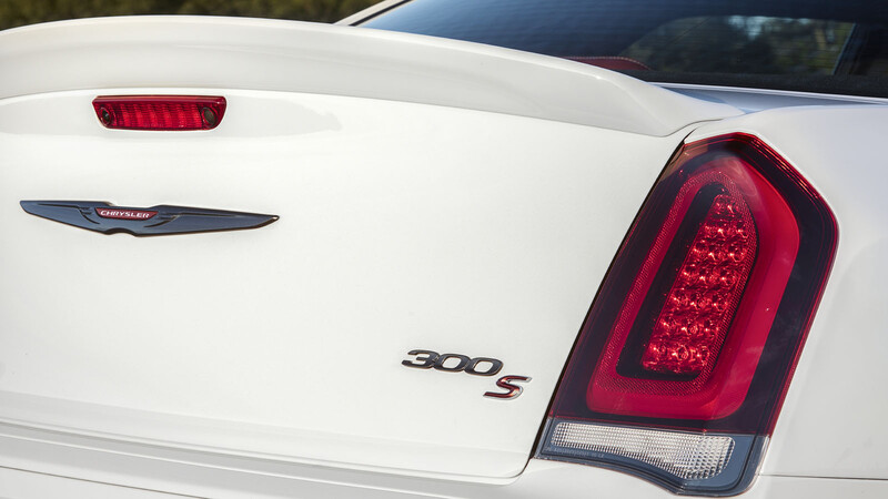 - El paquete Red S con parrilla negra brillante, insignias negras, llantas negras de 20", más insignias S rojas y detalles rojos en las "alas" de la insignia Chrysler pasa a ser de serie en el 300S.