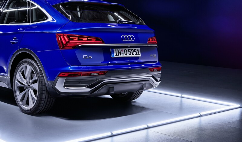 Esta apariencia deportiva del Audi Q5 Sportback va acompañada de iluminación delantera LED de serie, o Matrix LED de forma opcional, de OLED digital para las luces traseras y una enorme gama de 21 diseños de llantas, con diámetros de entre 18 y 21 pulgadas.