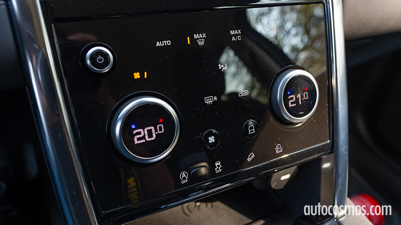 - El climatizador, oculta en sus funciones, la operación del sistema Terrain Response 2, con modos de tracción. Al principio puede confundir un poco pero después uno se acostumbra. Si bien, esto ya lo hemos visto en otros modelos de la marca, aun así, nos recordó al Nissan Juke, que fue otro auto que incluía un curioso panel mixto entre climatizador y performance.