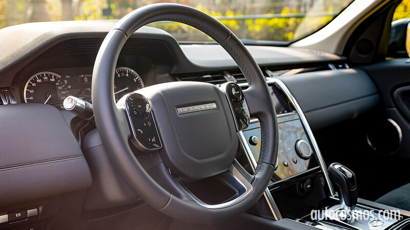 - El volante, tal como el Velar y otros autos de Land Rover, ahora exhibe mandos sensibles al tacto que además cambian sus lecturas en función de la acción que queramos ejecutar, sea el sistema de audio, el computador a bordo o el control crucero, así como algunas asistencias en modelos más equipados.