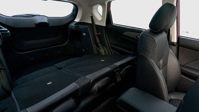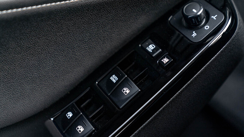 - El pilar D lleva un tratamiento de color negro que prolonga el diseño de la luneta trasera con las ventanillas laterales auxiliares, para dar un efecto de techo flotante. Esto es acompañado por un perfil cromado que recorre la parte baja de las ventanas.