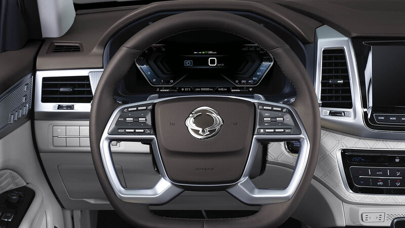 Rexton luce ahora muchisimo más lujoso, desmarcandose mucho más de la camioneta Musso. Ahora lleva una nueva parrilla octogonal de gran tamaño, con un entramado diamantado y un marco cromado. También exhibe nuevos focos frontales LED y neblineros de aspecto futurista, un capot alto, pero conservando las lineas musculares, herencia del conceptual que sentó las bases del Rexton, el LIV-2.