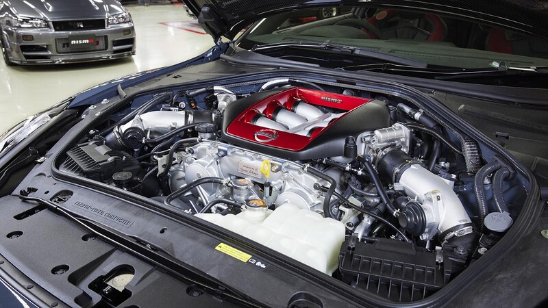 - El GT-R sigue contando con un poderoso V6 3.8 Biturbo (VR38DETT), el que eroga 600 Hp y 650 Nm de torque. Obviamente, es fabricado de manera artesanal y firmado por el ingeniero a cargo. Los turbos son fabricados por IHI y llegan heredados del GT-R GT3.