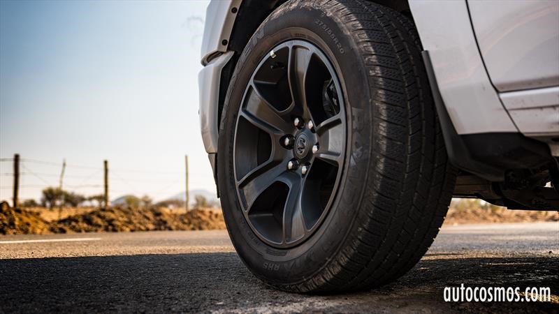 Finalmente, la RAM 1500 en su versión BigHorn también cuenta con un paquete oscurecido que se aprecia en la máscara, logos y llantas de aleación. Suma a eso neumáticos 275/55 R20, faros delanteros halógenos, con neblineros y DRL, ganchos e iluminación en el pick-up, enganche para remolque. No cuenta ni con cubre pick-up, ni con pedalera, ni con luces LED.