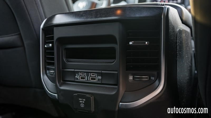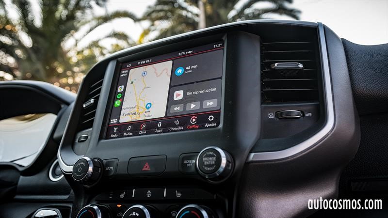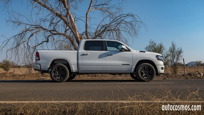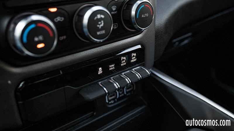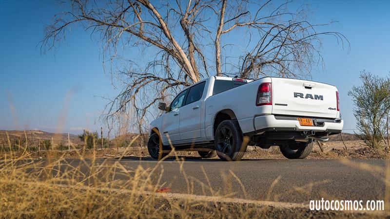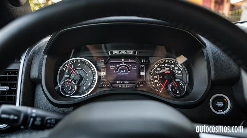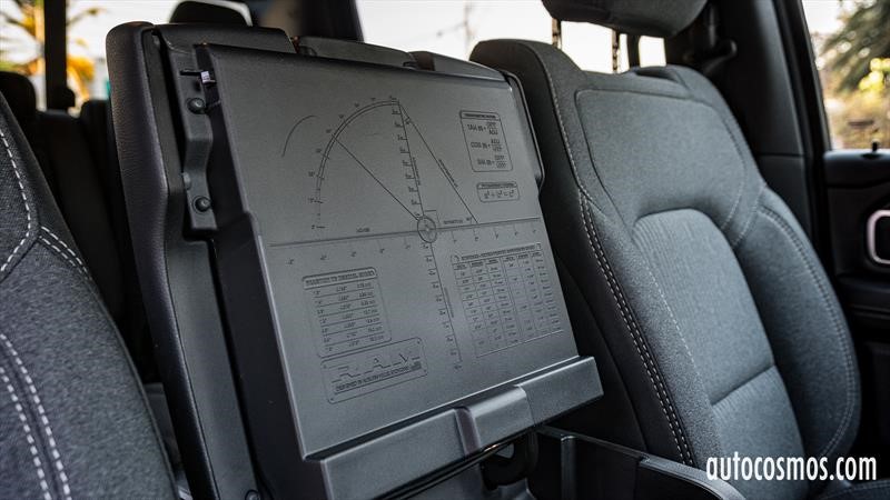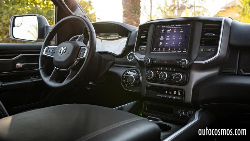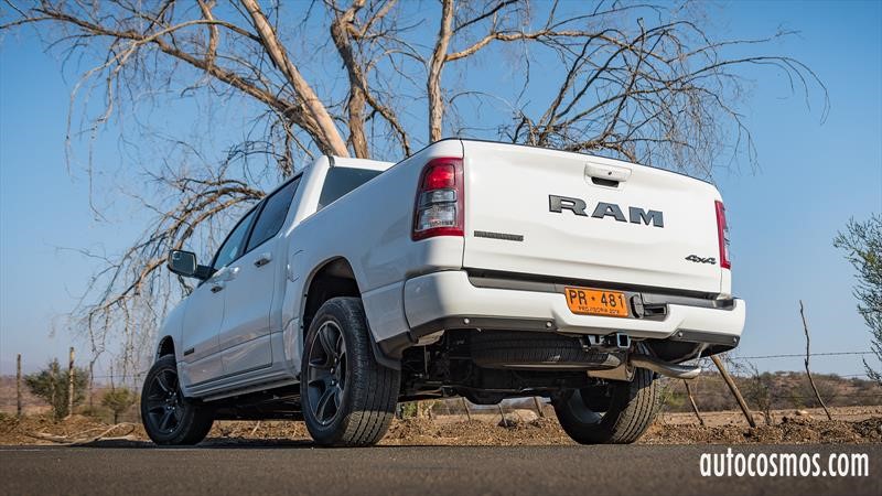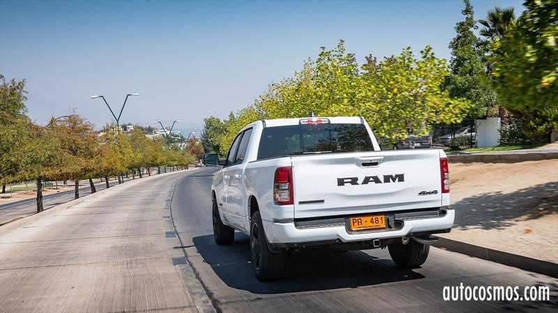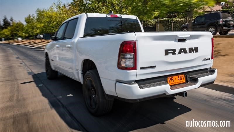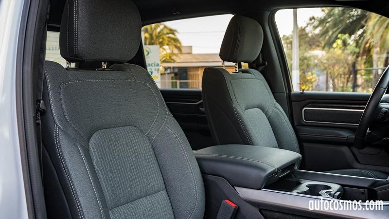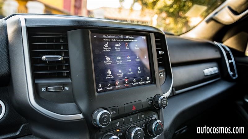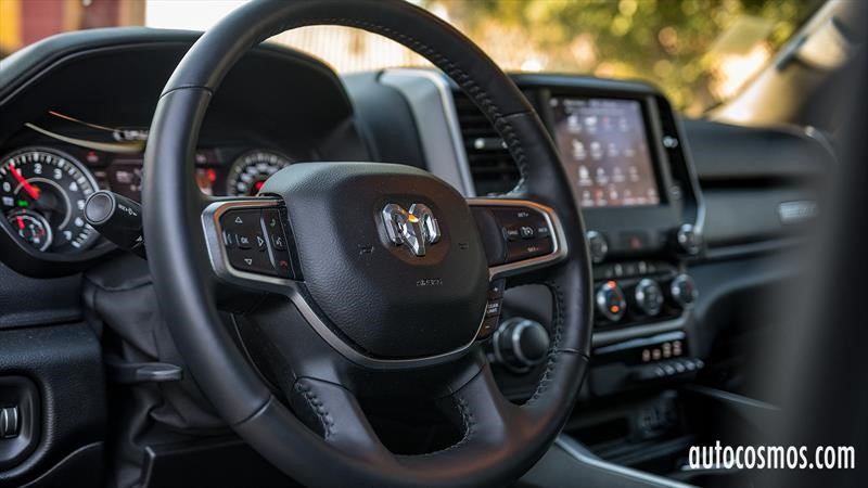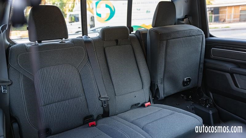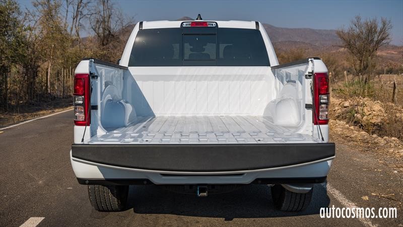 La RAM 1500 declara en esta versión una capacidad de carga de 757 kilos (los efectos de la suspensión trasera y del motor más pequeño), y de remolque de 2,9 toneladas (estándar). Si nos vamos al pick-up, mide 1,7 metros de largo y de ancho, con un volumen declarado de 1.570 litros. Y el despeje al piso es de 221 mm.
