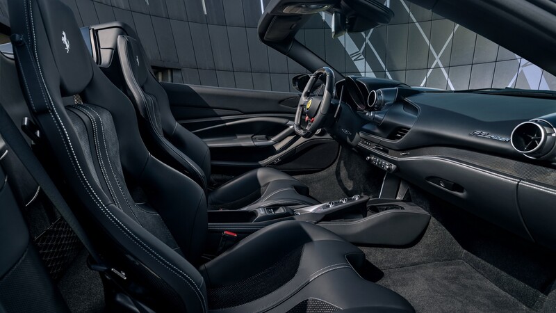 Adentro, el Ferrari F8 Spider puede ser personalizado con cuero, Alcántara y fibra de carbono, que haga juego con las modificaciones realizadas.