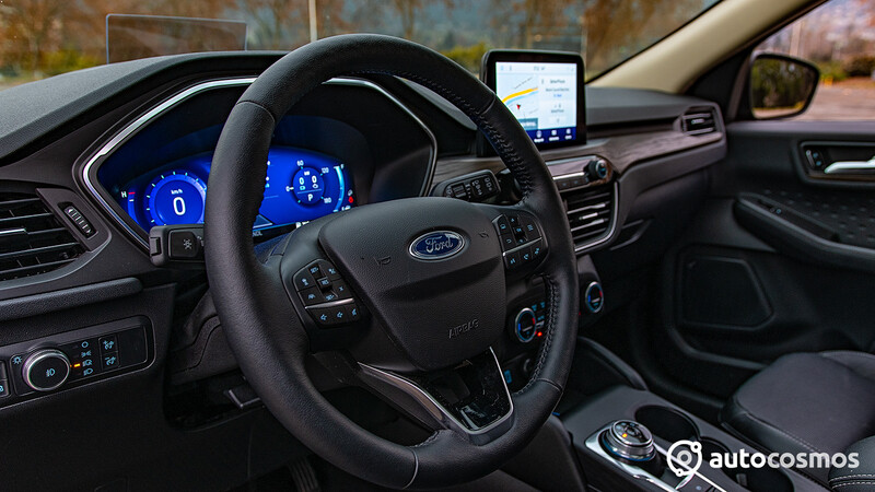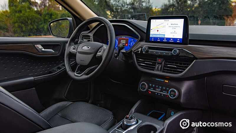 Por dentro, la Escape se aleja radicalmente del lenguaje de diseño anterior de la marca, el cual vimos en otros autos como el Ford Fiesta, con los aireadores en posición vertical, una enorme palanca de cambios, una pantalla y un cuadro de instrumentos muy empotrados. Ahora, la disposición del tablero es mucho más coherente, ordenada y ergonómica con los tiempos de hoy.
