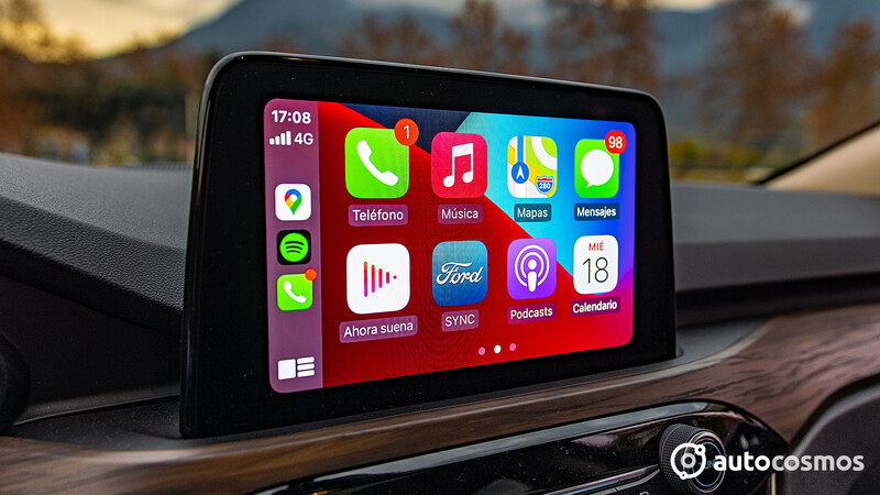 - Multimedia: sistema SYNC3 con pantalla de 8", con soporte para Apple CarPlay y Android Auto, enchufes USB tipo A y C, cargador inalámbrico, entre otros. Con Bluetooth, puede usar el teléfono como GPS para alimentar los mapas y también recibir WiFi para obtener algunas apps. Como siempre, el sistema SYNC no es el más bonito de todos, pero es por lejos uno de los más fáciles y prácticos de usar. También hay una función que te permite monitorear el flujo de energia del auto, o sea cuando está usando la batería, cuando está usando el motor y ese tipo de cosas.