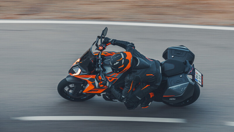 La versión sport-tourer de la 1290 Super Duke hereda las mismas mejoras técnicas de su hermana R, incluyendo la suspensión semiactiva WP Apex, aunque configurada para disfrutar de rutas largas, ofreciendo un funcionamiento muy intuitivo.
