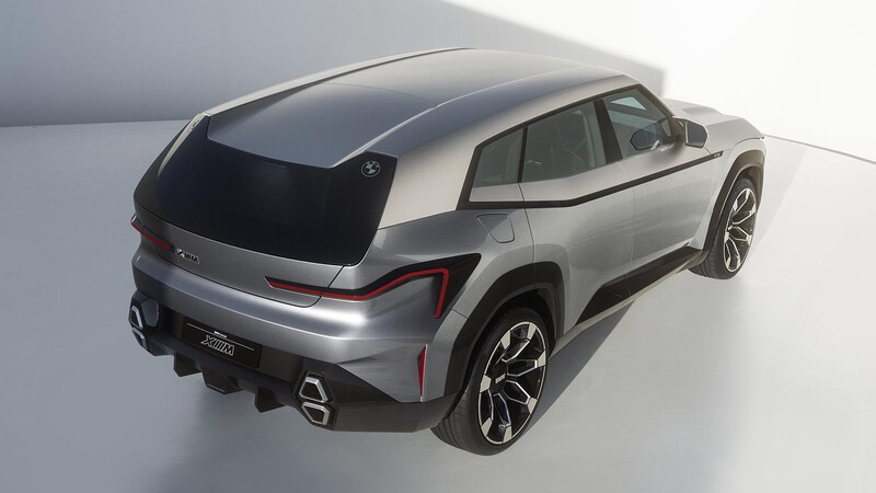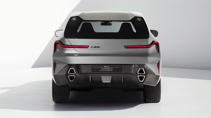 - Otros detalles singulares del XM son los focos auxiliares dispuestos sobre el techo, figura replicada en la luneta trasera donde aparecen dos logos de BMW, muy al estilo del M1 original o del X2. También llaman la atención las salidas de escape trapezoidales, y los espejos futuristas.