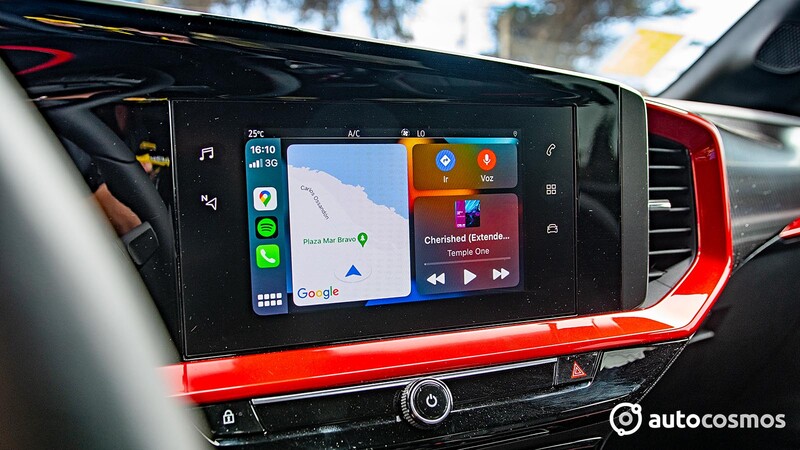 Donde no hay que perderse, es en estas mismas pantallas mencionadas, inscritas en un panel plegado integrado (Opel Pure Panel), al más puro estilo Mercedes-Benz. Las pantallas crecerán el próximo año, pero desde Opel decidieron lanzar el modelo con estas pantallas más chicas para no atrasarse en el lanzamiento. Tras las pantallas, a cada costado, están los aireadores principales, más un tercer aireador central en el medio, más abajo.