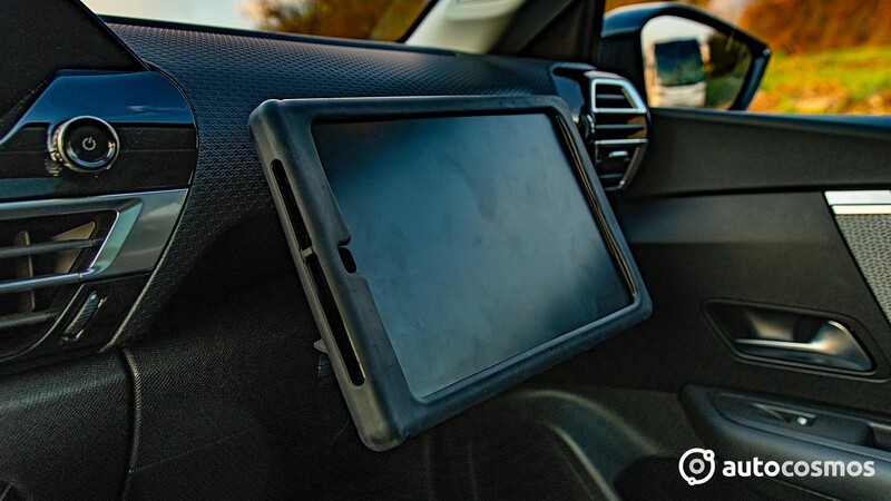 - Espacios: hay espacios muy interesantes, pero primero, el soporte para tablet frente al copiloto, el cual consiste en una carcasa que se oculta en una cajonera sobre la guantera. Dicha carcasa tiene una fijación la cual se monta en un soporte sobre la cajonera, lo que permite que el copiloto pueda ir viendo películas, jugando con un tablet de manera cómoda y hasta ir revisando notas de un viaje, mapas, etc. Pasando al centro del auto, nos encontramos con una bandeja que permite la carga inalámbrica del teléfono, flanqueada por dos puertos USB. Más abajo aparece una segunda bandeja que en realidad es una tapa, la cual permite esconder algunas cosas de la vista. Hay posavasos con tapa, un cubículo bajo el apoyabrazos, bolsillos en las puertas y la guantera.