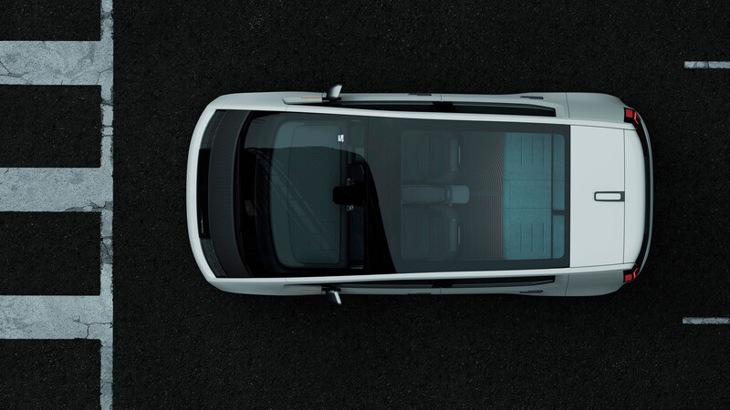 - Posee un enorme parabrisas que se integra a un techo panorámico de vidrio.