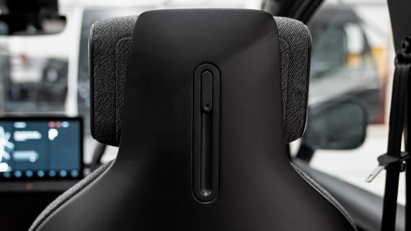 Aunque el interior luce muy básico, Arrival afirma que ofrece mayor espacio que cualquier coche de su tamaño y que incluso es más generoso que un Rolls Royce. Y si se requiere de mayor espacio, el asiento del copiloto se puede doblar y moverse hacia a delante, para guardarse debajo de la consola. Con esto se maximiza el espacio para piernas.