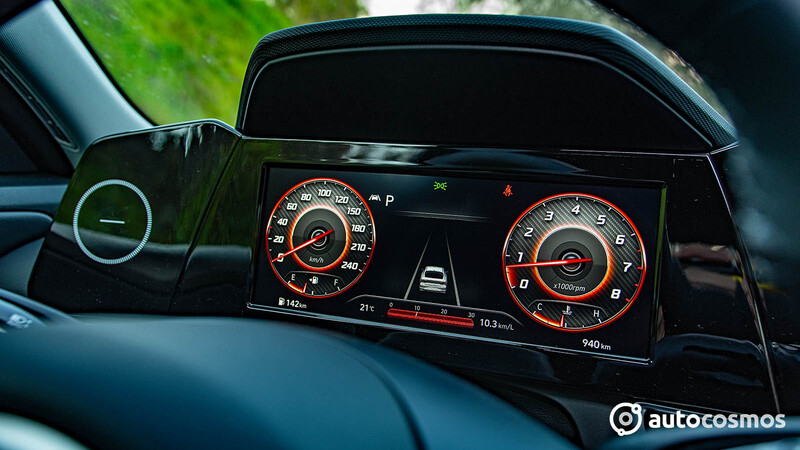 Adentro es otra cosa. Si bien el interior ya lo conocíamos en imágenes, sentarse adentro y vivir la experiencia que ofrece en diseño y posición de manejo es otra cosa. Esto no parece un Hyundai, ninguno que recordemos y mucho menos algún otro auto, en especial por cómo te envuelve la consola de manera completa, al punto que lo más parecido, es el Corvette de motor central, en cómo te aísla del pasajero. Incluso me atrevería a decir que hay una inspiración "aeronáutica", con los comandos digitales, la palanca de cambios en T y los detalles cromados del volante. Realmente este es un interior muy moderno y de esta época.