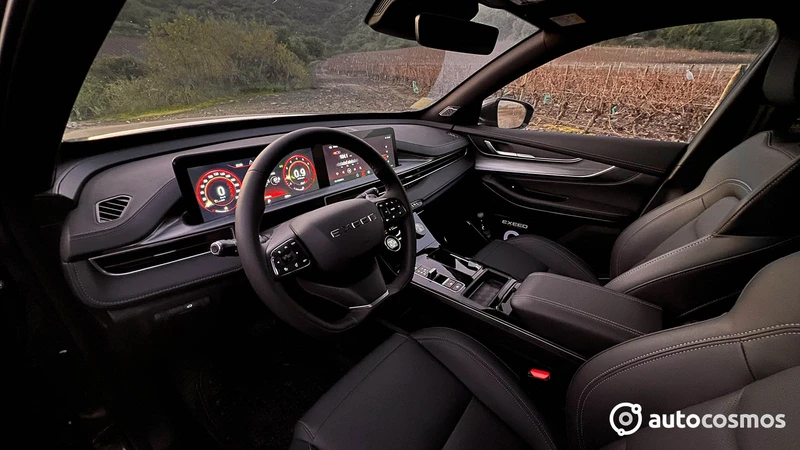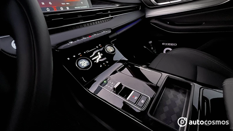 Por dentro, hay varias cosas que son comunes para todos los Exeed, tanto en diseño como en equipamiento. Por ejemplo, el panel con dos pantallas integradas de 12,3", el volante multifunción ajustable en dos ejes o el climatizador digital con dos diales. Esto también lo hemos visto en otras marcas así que no es nada del otro mundo.