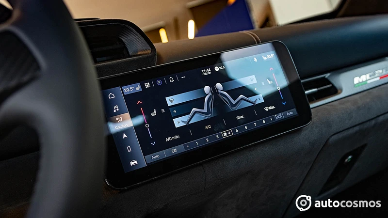 El minimalismo del MC20 va muy de la mano con la propuesta central de este auto, que es entregar una experiencia focalizada en el conductor y no ser una nave espacial llena de botones o de formas complejas.