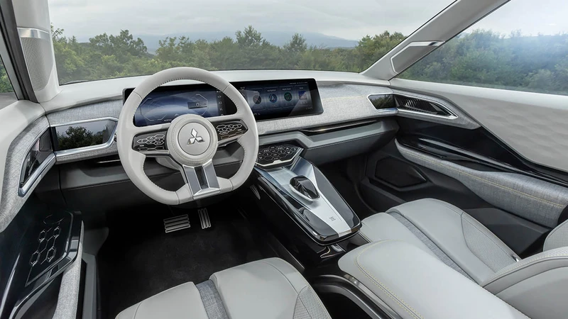 Tal como es la moda hoy en día, el cuadro de instrumentos y el sistema multimedia vienen inscritos en un solo panel integrado que va a tono con el diseño temático horizontal del tablero. Según Mitsubishi, se escogió una disposición horizontal porque permite mejorar la visibilidad frontal y porque permite detectar rápidamente la inclinación del auto cuando se maneja en superficies irregulares. Este diseño horizontal es envolvente e interactúa con los paneles de las puertas para lograr un estilo más acogedor e integrado, pero que también pueda brindar una sensación de protección y confort.