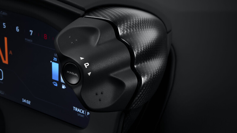 En el interior, el Artura presenta novedades interesantes, con una resolución extremadamente minimalista. El volante no tiene botón alguno, esto se debe a que mandos relacionados con los modos de conducción y controles del tren motriz fueron movidos a un costado del panel de instrumentos digital.