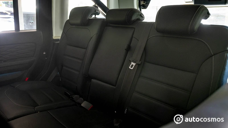 El espacio en las plazas delanteras siempre es bueno en cualquier auto, pero atrás, para poner en perspectiva las dimensiones, el confort se sacrifica un poco, porque el auto es un poco más estrecho. Queda un puño y algo de margen para las cabezas en los asientos laterales; en el del centro es algo menos, además que el respaldo es duro, como suele pasar en todos los autos que llevan un apoyabrazos incorporado. Yo creo que ofrece más confort que una camioneta doble cabina (por los respaldos reclinables), pero menos confort que un SUV moderno. Las puertas son un poco pequeñas, importante si vas a usar los anclajes ISOFIX para las sillas de tus hijos.