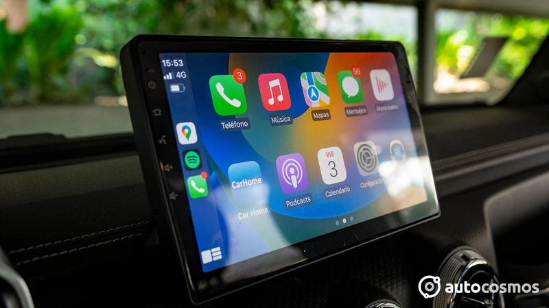 La segunda pantalla es de 10 pulgadas y tiene una interfaz más genérica (aftermarket). Queda cómoda para su uso, con comandos físicos en la consola central, pero molesta para mirar al frente, generando un punto ciego. Cuenta con sistema de grabación DVR, Bluetooth, cámara de retroceso (no es de la mejor resolución, es mucho mejor la del espejo retrovisor) y conectividad inalámbrica a Apple CarPlay o Android Auto, entre lo principal.