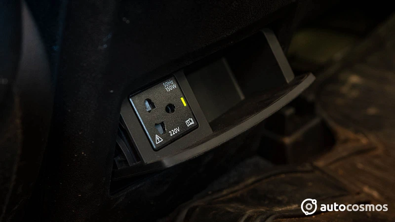 Por el lado del equipamiento, se trata de la versión tope de linea y por supuesto que el equipamiento es muy abundante. El selector tipo joystick, las luces ambientales y hasta un encendedor de cigarros, algo muy difícil de encontrar hoy en día, son parte del paquete. Pero también hay cosas como un sistema de audio con subwoofer o un espejo retrovisor central con cámara de alta resolución incorporada, climatizador dual, enchufe de 220v en la segunda fila, luces LED DRL de encendido automático, entre lo más destacado. Hay otras cosas que tienen que ver con las pantallas y la seguridad, que las comentaremos después de la siguiente imagen.