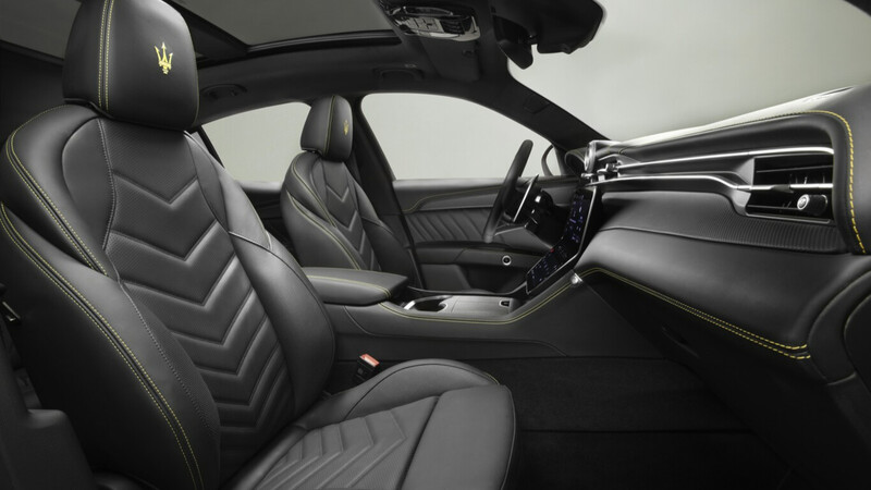La estética interior es limpia, elegante y muy tecnológica, con varias superficies táctiles que sirven de control de mandos (eliminando así los botones), y una larga salida de aire que recorre el tablero de lado a lado. Entre los detalles, Maserati eliminó las palancas interiores para abrir las puertas y en su lugar puso pequeños botones que cumplen esa función.