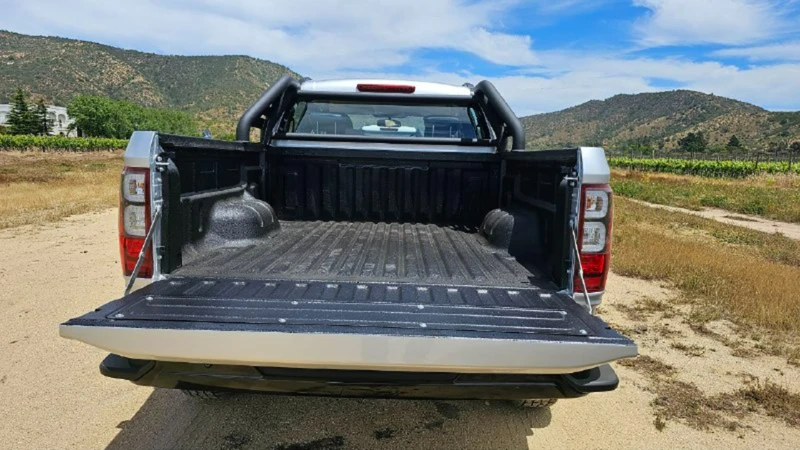En el pick-up destaca un revestimiento interior de poliuretano, una barra antivuelco con diseño deportivo, y ganchos interiores para afirmar la carga. Un detalle son los escalones para trepar al pick-up instalados en las esquinas del parachoques trasero.