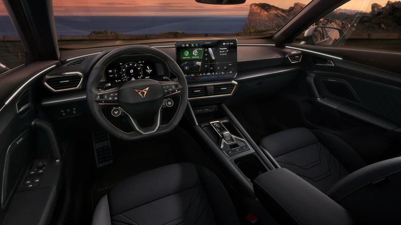 El habitáculo ofrece un ambiente de mayor calidad con elementos rediseñados como la consola central y los asientos tipo Bucket, que pueden ir tapizados con microfibra sostenible (73% reciclada y con una perforación láser progresiva) o con cuero respetuoso con el medio ambiente.