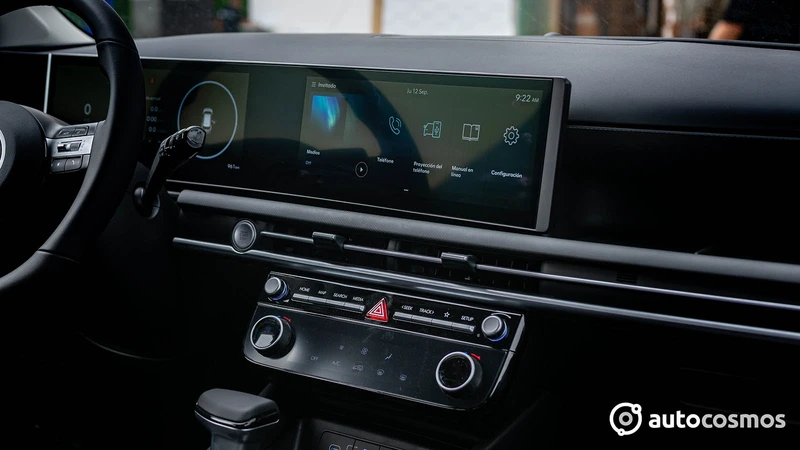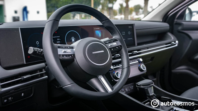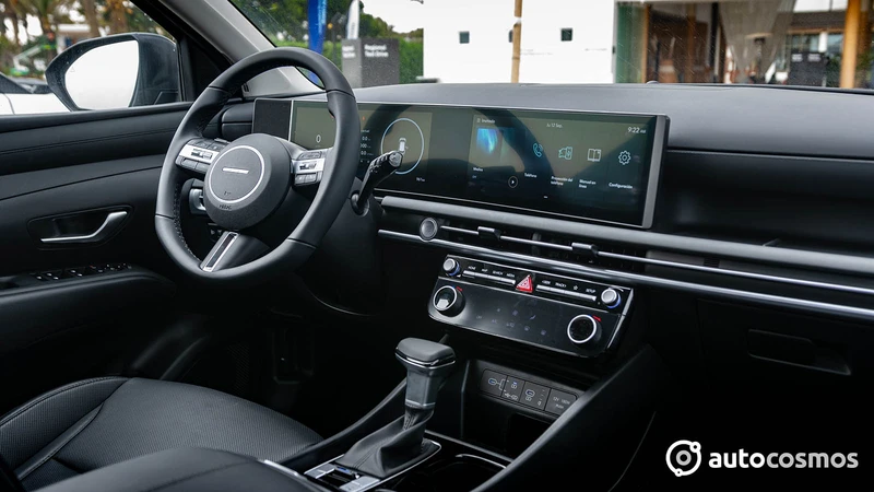 Y para esta variante 2025, sí hay muchos más cambios interiores que en el exterior. Partiendo por el nuevo diseño de tablero que incorpora el panel panorámico con dos pantallas de 12,3" ya visto en Kona, IONIQ 5 y Santa Fe. Esto también mejora la ergonomía, al alinear el sistema multimedia con el clúster, simplificando nuestro campo visual.