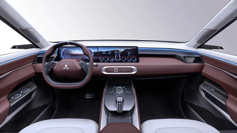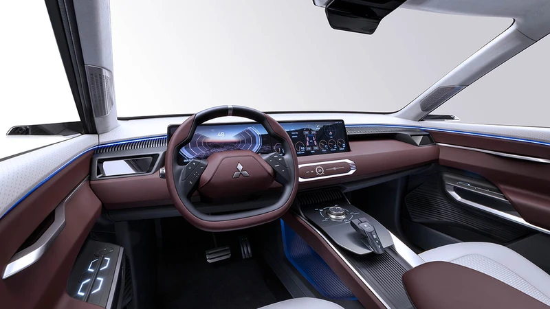 Los materiales son suaves al tacto, aunque muchos de estos de seguro serán reemplazados por polímeros más duros cuando el auto sea fabricado. También es llamativa la propuesta en diseño para el volante, el cual simula el look de un control de videojuegos y que podría anticipar un rediseño de los volantes de Mitsubishi.