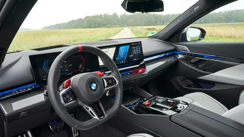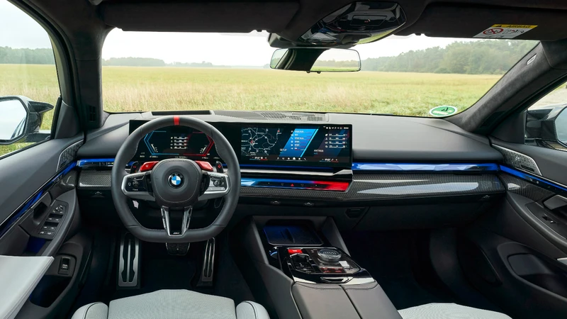La gracia es que cuando se liberan los modos más deportivos, el rendimiento es sobresaliente. Lo más llamativo es que el torque instantáneo del motor eléctrico ayuda a eliminar el turbolag del M5 anterior para aceleraciones que pueden sentirse brutales, y el rango medio es tan vívido como la zona alta del tacómetro (hasta 7.200 rpm), que es donde V8 funciona a placer.