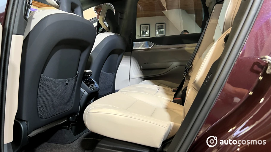 Por fuera las lineas lo hacen ver tan imponente como refinado, con una línea de la cintura bien marcada, que parte desde el foco delantero y se extiende por todo el cuerpo del auto hasta el foco trasero. A su vez, nos encontramos con la presencia de algunos pliegues en la zona baja de las puertas para dar un mayor movimiento al vehículo, y algo que no podemos dejar pasar, es que este EX90 tiene un coeficiente aerodinámico de 0.29, convirtiéndolo en un ejemplo a seguir en este campo.