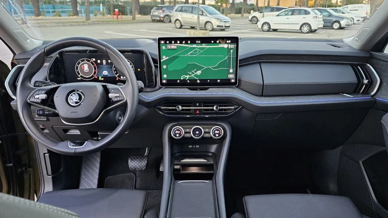 Al igual que en el exterior, el nuevo Kodiaq asumió muchos elementos que se estrenaran en el nuevo Superb, incluyendo el diseño del tablero y la disposición de los mandos. Es mucho más funcional y moderno, ostentando un diseño simétrico y más minimalista, pero no por ello difícil de entender para el conductor.