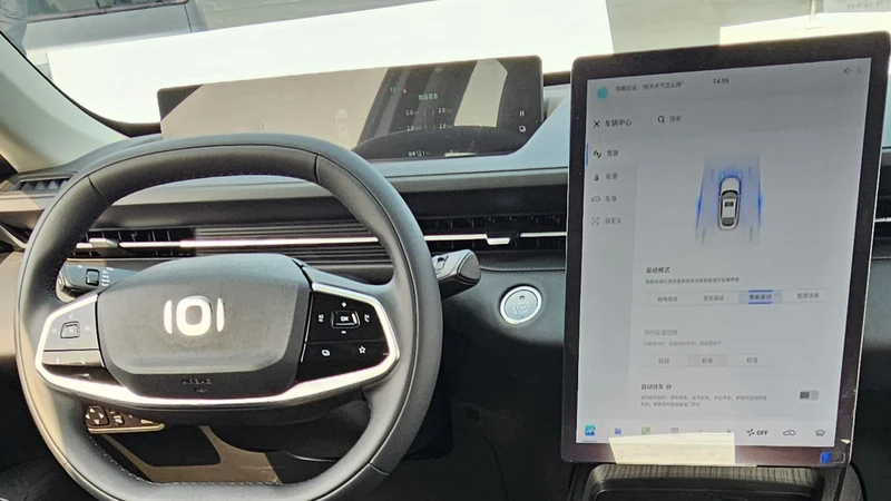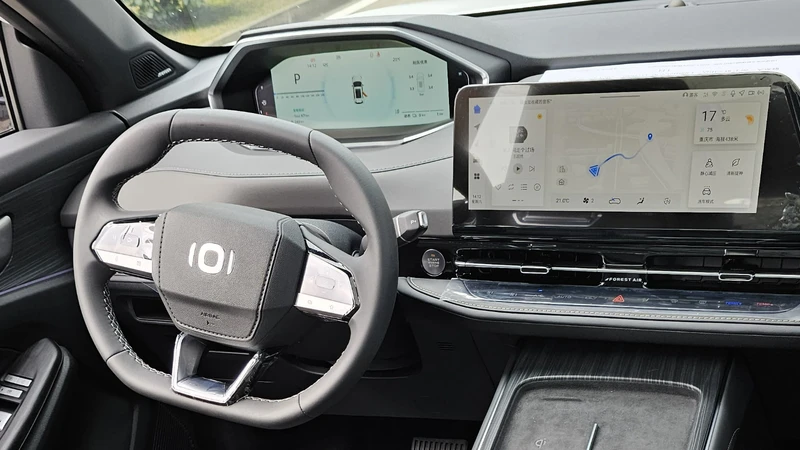 El diseño del tablero y de las salidas de aire tienen disposición horizontal, mientras que la consola central es el típico puente chino, ancho y alto, con la palanca de cambios, mando para los modos de manejo, posavasos con tapa y dos lugares para dejar el teléfono (con carga).