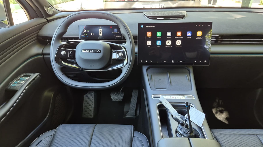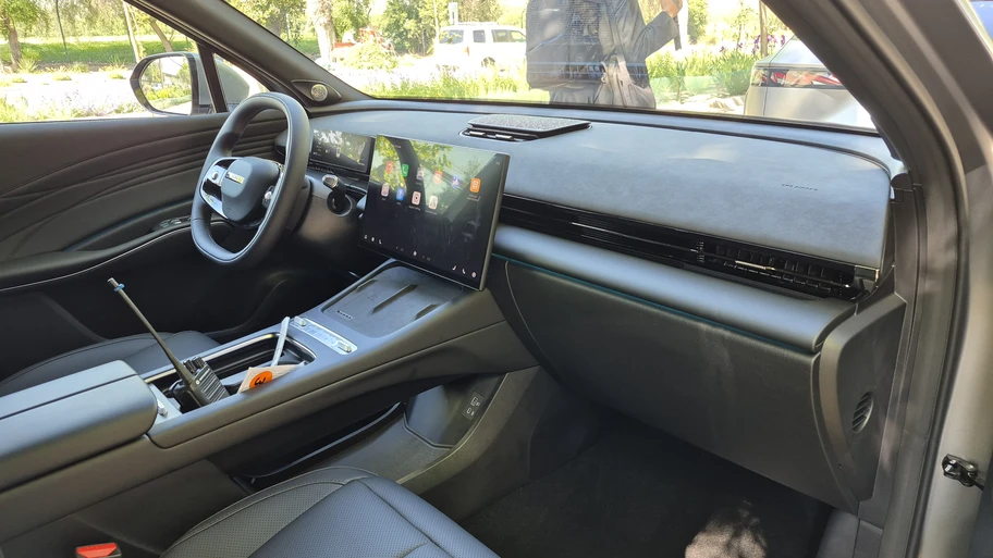 Al abordarlo, vemos que su cabina presenta un estilo minimalista bastante marcado, aunque mantiene algunos botones para el control del clima y la radio. El interior se siente de buena calidad, abundan los polimeros blandos y los materiales suaves al tacto en tonalidades bastante oscuras, el cual se ve iluminado gracias a un enorme techo panorámico que cuando está abierto realza aún más la sensación de amplitud.