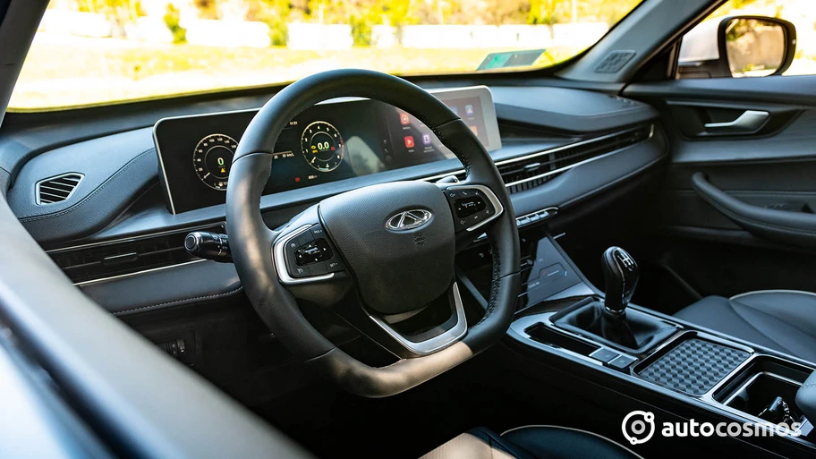 El interior tiene una buena percepción de calidad ya que es prácticamente el mismo que el del Tiggo 7 Pro Max. Por supuesto que la consola central recibe un climatizador con controles táctiles más simples y por la caja manual, se pierde el espacio portaobjetos inferior (efecto "puente chino"). Las manillas en las puertas son diferentes y el brazo inferior del volante tiene un diseño distinto, pero lo demás es igual. El piano black no nos gusta, pero se entiende su uso, para darle continuidad al climatizador, dando un "efecto cascada" sobre la consola.