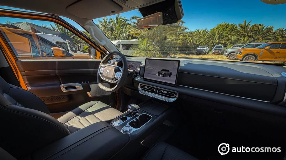 Lamentablemente, DFSK se cae enormemente en la cantidad de airbags de este modelo (2, 4 y 6, escalando en las versiones), si bien aseguran que su estructura es la más rígida de sus rivales con más de un 70% de aceros de alta resistencia en cabina y un 97% de aceros de alta resistencia en el chasis, bastante por encima de sus dos benchmark, la GWM Poer (54%; 76%) y la JMC Grand Avenue (65%; 65%). Probablemente se debe a que este modelo también fue desarrollado para un tren motriz PHEV y se requiere mayor solidez para sostener y proteger las baterías y componentes eléctricos.