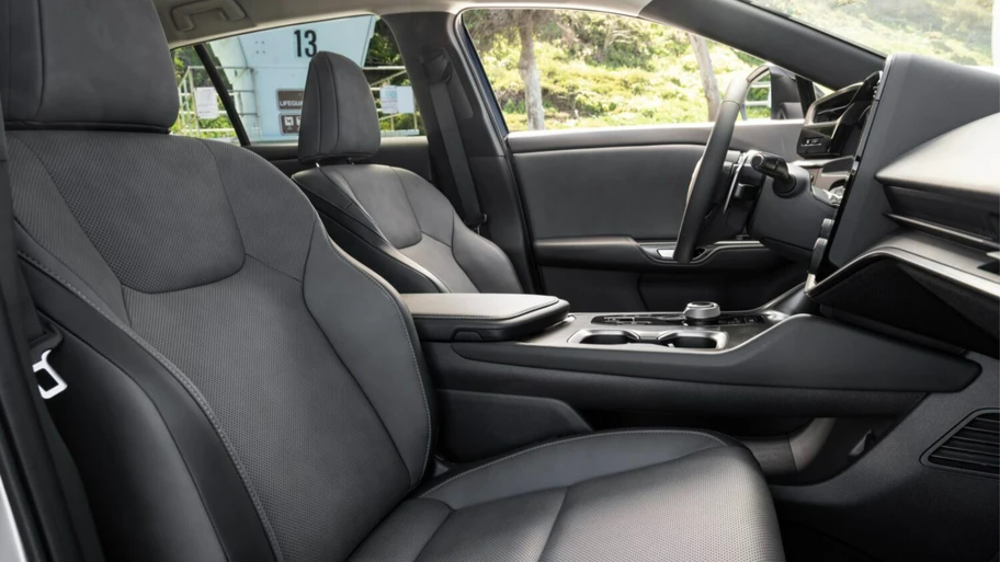 Puertas adentro, el RZ no esconde las ambiciones premium de Lexus, ni tampoco su enfoque sustentable, ya que prácticamente todos los materiales son sintéticos y reciclados.