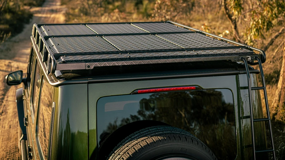 En cuanto a los nuevos equipamientos, el G 63 Offroad PRO monta llantas de aleación AMG de 20 pulgadas en negro mate, donde se montan neumáticos todoterreno específicos de AMG para un mejor agarre. Se añaden faldones traseros PROFESSIONAL y un juego de alfombrillas de goma para el habitáculo y el compartimento de carga, así como una caja de carga de techo PROFESSIONAL con placas de aluminio, y una escalera trasera.