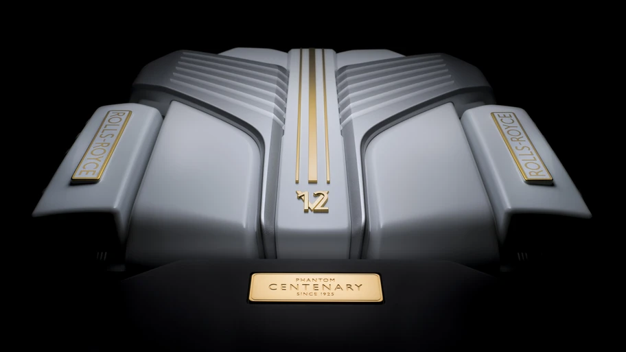 Tomando como referencia el primer Spirit of Ecstasy jamás instalado en un Phantom, los diseñadores crearon un homenaje a esta emblemática figura, fundida en oro macizo de 18 quilates para mayor resistencia y bañada en oro de 24 quilates para un acabado impecable y resistente al deslustre. La pieza se presentó a la Oficina de Marcado y Ensayo de Londres, donde recibió el sello "Phantom Centenary", especialmente desarrollado. La base de la figura está acabada con esmalte vítreo blanco vertido a mano, con el nombre de la colección delicadamente grabado. Por primera vez, la Insignia de Honor "RR", ubicada en la parte delantera, trasera y lateral del vehículo, se presenta en oro de 24 quilates y esmalte blanco.