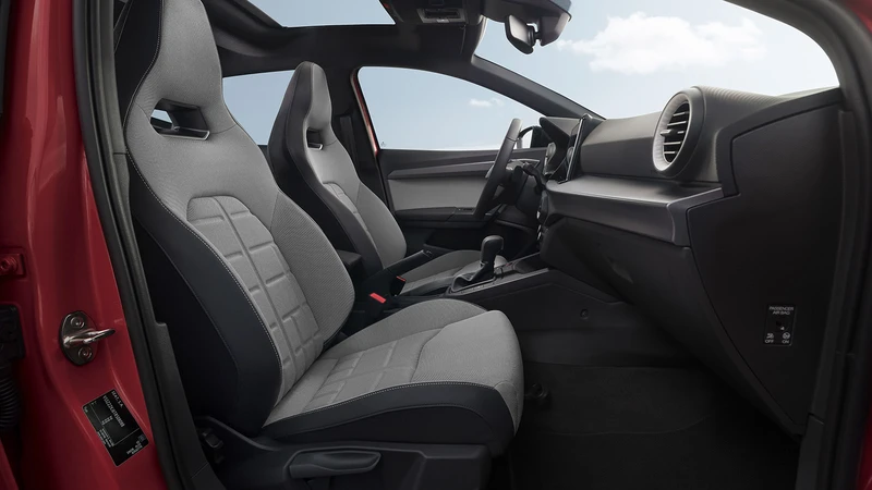 Otras mejoras de serie son la actualización a las interfaces gráficas del Ibiza, más rápidas y de mejor resolución. El sistema multimedia es de 8,25" o 9,2", mientras que el cuadro de instrumentos puede equipar el Digital Cockpit de 10,25" como opcional. Volviendo al sistema multimedia, este ofrece conectividad inalámbrica a Apple CarPlay y Android Auto (Full Link) y servicios conectados (SEAT Connect, app My SEAT), así como un sistema de audio con seis parlantes, subwoofer y amplificador de 300w. También puede ser operado por voz con el comando "Hola, Hola". Para cargar tus dispositivos cuentas con dos enchufes USB-C y un cargador inalámbrico ventilado de 15w. El equipamiento puede completarse, según versión, con climatizador, ventanas tinteadas, acceso Keyless, sensores de estacionamiento y cámara de retroceso.