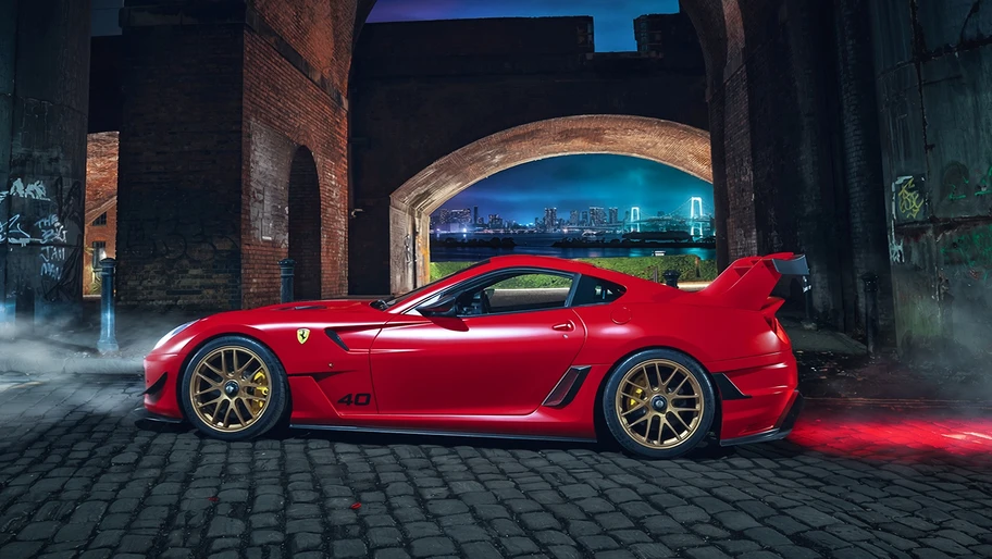 Este modelo ultra exclusivo, del que se producirán sólo 5 unidades, utiliza como dador a un Ferrari 599XX, y así ofrecer un modelo inspirado en la competición, combinando la agresividad clásica de un deportivo italiano con la practicidad de un Gran Turismo británico. lo llamativo es que mantiene intactos los logos del Cavallino tanto por fuera como por dentro.