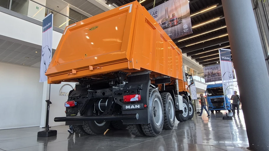 Esta variante del camión MAN está equipada con un volquete de 22 m3 desarrollado exclusivamente para el mercado chileno. Se trata de una caja basculante de acero diseñada para las aplicaciones más exigentes, resistentes al desgaste y las grietas, y que admite cargas de hasta 50 toneladas.
